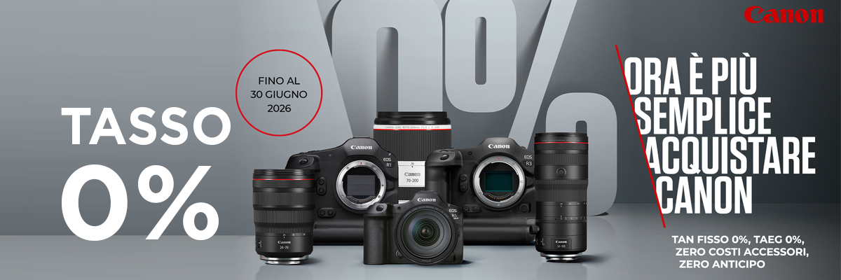 Finanziamento a tasso zero fino a 24 mesi, con prima rata a 30 giorni e un importo finanziabile da 1.000 € a 10.000 €, su una selezione di fotocamere del Sistema EOS R con Agos finanziaria.
