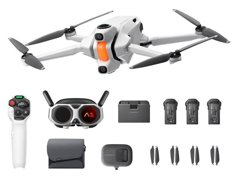 | note | In dotazione ANTIGRAVITY A1 8K 360 Drone Explorer Vision Goggles Grip Motion Controller 3 x Flight Battery Charging Hub Controller Strap Vision Battery Headband Foam Padding Lens Cap Battery Lanyard USB-C to DC Power Cable USB-C Charging Cable 8 x Spare Propeller Screwdriver Carry Case Sling Bag Corrective Lens Frame Lens Cloth |