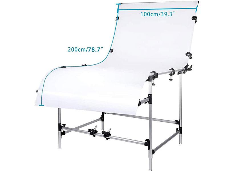 la superficie di ripresa in acrilico è ideale per scattare immagini nitide di alta qualità senza ombre. La curva di sweep produce una transizione tra il prodotto e lo sfondo senza distorcere l'immagine. Questo ti offre un vantaggio quando si ritaglia o si modifica l'immagine in un secondo momento. Il foglio in plexiglass acrilico bianco traslucido non riflettente consente di posizionare l'illuminazione a tutte le angolazioni, anche da dietro e sotto il tavolo. Professionale: il tavolo fotografico è ideale per creare immagini di prodotto di qualità professionale con una post-produzione minima necessaria. Con dimensioni di 100 x 200 cm, è adatto per una varietà di prodotti come cosmetici, gioielli, elettronica e alimentari, perfetto per cataloghi commerciali e siti web di e-commerce. Regolabile: il retro regolabile può essere ruotato da 90 gradi a 180 gradi in modo indipendente, in modo da poter regolare le maniglie su entrambi i lati per l' angolazione, che serve per scattare oggetti di grandi dimensioni. 8 speciali morsetti a forma di U che consentono la regolazione della rotazione e producono stabilità e praticità . Robusto e stabile: costruito con un telaio in alluminio robusto ma leggero, questo tavolo super-resistente è stato progettato per garantire stabilità . Con una capacità di carico di 10 kg, è un'ottima scelta per una varietà di ambienti di ripresa. |