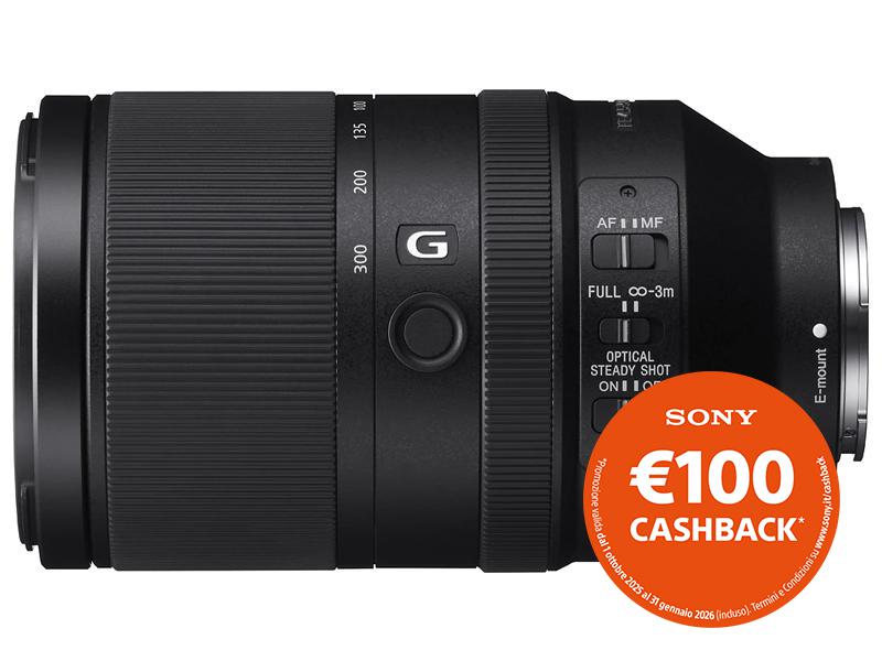 | COSTITUZIONE OTTICA | SONY SEL FE 70-300/4,5-5,6 G OSS teleobiettivo serie G , Zoom stabilizzato per video/fotocamere Sony E-Mount ( Full Frame e APS-C ) Copertura formato:Full frame 35 mm Lunghezza focale:70-300 mm Lunghezza focale equivalente a 35 mm (APS-C): 105-450 mm Gruppi/elementi dell'obiettivo: 13 / 16 lamelle di apertura: 9 apertura circolare: sì Il Design ottico comprende quattro elementi asferici e due elementi bassissima dispersione di vetro per controllare le aberrazioni sferiche e cromatiche in tutta la gamma di zoom a garanzia di maggiore incisione, nitidezza e fedeltà del colore. Un rivestimento Nano AR è stata applicato anche a lenti singole per ridurre al minimo il flare e le immagini fantasma, al fine di aumentare il contrasto e la fedeltà dei colori quando si lavora in condizioni di luce forte. Diaframma arrotondato a nove lamelle contribuisce ad una piacevole qualità bokeh . |