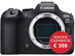 | In Dotazione | Corpo fotocamera mirrorless Canon EOS R6 Mark II Tappo per fotocamera R-F-5 Protezione dell'attacco a slitta ER-SC2 Cinghia ER-EOS R6 II Caricabatteria LC-E6E Batteria LP-E6NH Coperchio batteria Cavo CA Manuale dell'utente |