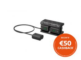 SONY NPA-MQZ1K MULTI BATTERY ADAPTOR KIT Grande autonomia di scatto. Questo adattatore per batterie permette di ricaricare fino a quattro batterie serie NP-FZ100 Z e supporta sessioni fotografiche prolungate. Alimenta fotocamere compatibili con batterie serie Z o W2. Questo kit adattatore multibatteria può connettersi e alimentare una fotocamera con batteria serie NP-FZ100 Z o NP-FW50 W2. Rimuovendo la cover della batteria serie Z (figura [A]), la piastra di alimentazione (figura [B]) può essere utilizzata con fotocamere compatibili con batterie serie W. Ricarica rapidamente batterie NP-FZ100 Questo adattatore per batterie ricarica rapidamente fino a quattro batterie serie NP-FZ100 Z3 tramite un adattatore c.a. in circa 480 minuti4. Lo stato della ricarica è indicato tramite 3 luci LED diverse quando viene premuto il pulsante per controllare la potenza della batteria rimanente. Alimentazione o ricarica della batteria selezionabili: Dal selezionatore USCITA C.C./RICARICA posizionato al centro del pannello di controllo puoi scegliere se caricare le batterie o assorbirne l'alimentazione. Con due porte USB per l'alimentazione: il selettore fotocamera/USB permette di cambiare l'uscita c.c. per decidere se alimentare il corpo della fotocamera o altri dispositivi elettronici connessi tramite le porte USB.5 Flessibilità di configurazione per scene diverse: questo adattatore per batterie è provvisto di tre prese a vite sulla parte superiore e inferiore dell'unità (6 prese in totale), per una configurazione a rig flessibile tramite piastra di montaggio e viti. |